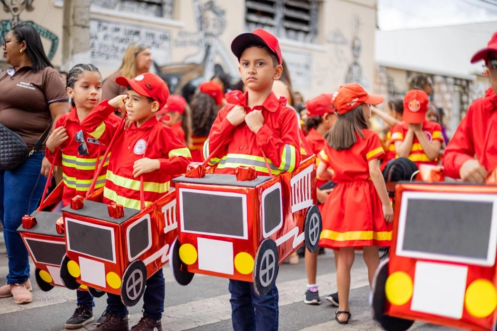 A avenida foi tomada por cores, cultura e orgulho cívico. As fanfarras deram um verdadeiro show à parte, encantando o público com apresentações e evoluções marcantes. Neste ano, a Prefeitura investiu na reforma das fanfarras, garantindo melhor estrutura e desempenho para as apresentações que arrancaram aplausos calorosos do público.
