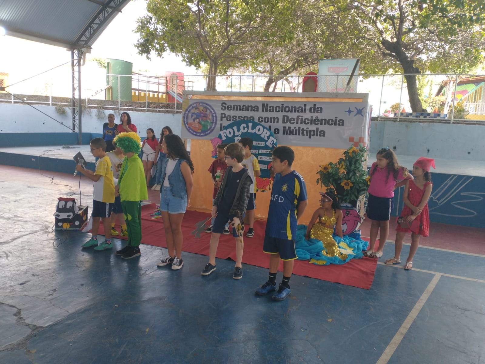 Nesta sexta-feira (22), a Escola Nossa Senhora de Fátima (ENSF), celebrou o dia do Folclore (22), junto ao seus alunos do ensino fundamental, I, II e Médio o dia nacional do Folclore com atividades em alusão ao grande dia. Para tanto, recebeu os alunos da APAE para participarem da programação, além do professor Abenilson Pina, (Palhaço Zebrinha) que fez uma bela apresentação.