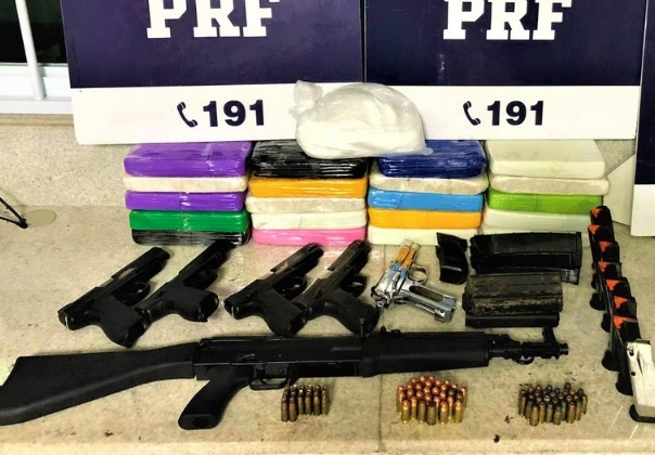 Ao todo, foram apreendidos 1 fuzil 5.56, de origem estrangeira; 1 pistola 9mm; 4 pistolas 40mm; 12 carregadores; 29 munições de .40; 29 munições de .45; 20 munições de 9mm e mais 21,25 kg de cocaína.