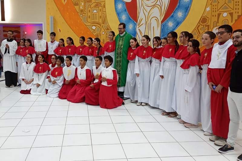 Após um período de preparação espiritual e formação litúrgica, conduzido pela coordenação do grupo de coroinhas: Alisson Pedrosa, Wendel Costa e Phâmela Portugal, os jovens foram instituídos no ministério de coroinhas, assumindo com fé e responsabilidade o serviço ao altar e às celebrações da comunidade. Inspirados por São Tarcísio, padroeiro dos coroinhas e cerimoniários, eles agora passam a atuar de forma ativa na liturgia, colaborando com dedicação e respeito no cuidado com os ritos sagrados.