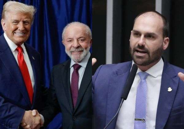 O deputado federal Eduardo Bolsonaro (PL) se manifestou diante do encontro entre os presidentes Luiz Inácio Lula da Silva (PT) e Donald Trump neste domingo (26). O parlamentar ignorou a fala do mandatário norte-americano sobre o pai, Jair Bolsonaro (PL), e teceu críticas ao chefe do Executivo.